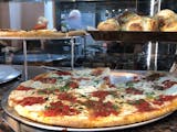 Crushed fresh Tomatoes, fresh garlic, fresh basil, & extra virgin olive oil on a Sicilian square crust, no cheese.